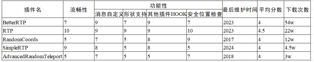 2. 如果你不嫌麻烦,可以在 Excel 中分析插件的优劣并打分,下图比较了当前下载量前 5 的随机 TP 插件。
